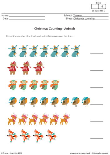 Animals math worksheets xmas