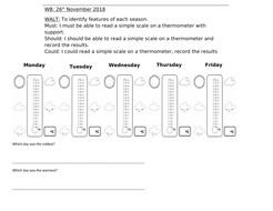 Free Temperature Worksheets | edHelper.com Math Worksheets: Temperature Worksheets. Temperature can be a hot topic for students, and it is a subject that can be confusing unless presented in the right way. These expertly-designed, sharp worksheets give students concrete examples that will help them understand Fahrenheit and Celsius clearly. With this kind of practice, students will soon ... Temperature - Scholastic Keep your cool when teaching about temperatures. Lesson plans and temperature worksheets cover basics like reading a thermometer and more advanced, related topics: analyzing data in charts and graphs, working with negative numbers, comparing units of measure (Celsius & Fahrenheit), and average temperatures.